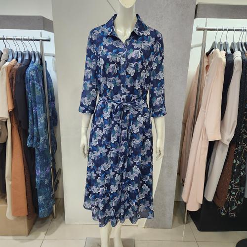 비비디아 여성 봄 가을 클래식 카라넥 금장버튼 플레어핏 하객룩 오피스룩 원피스 데일리룩(벨트포함)5573