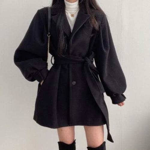 [셀러허브_여성트랜드패션]여성 일상복 세련된 벌룬소매 벨트 짧은 코트