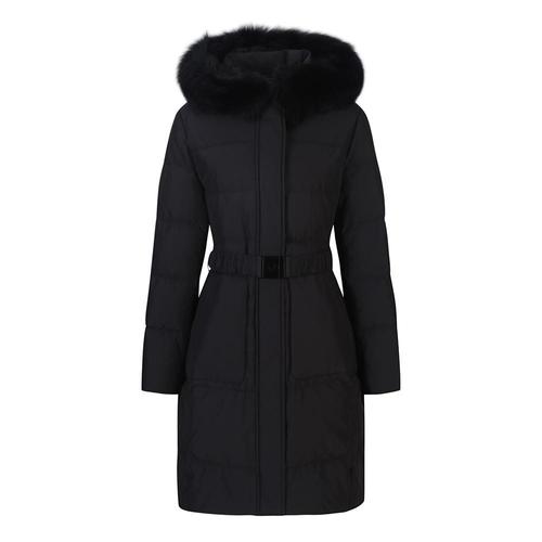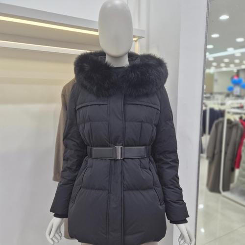 [양말드림]여성 벨티드 폭스퍼 후드 덕다운 점퍼 121D4JA453_BK