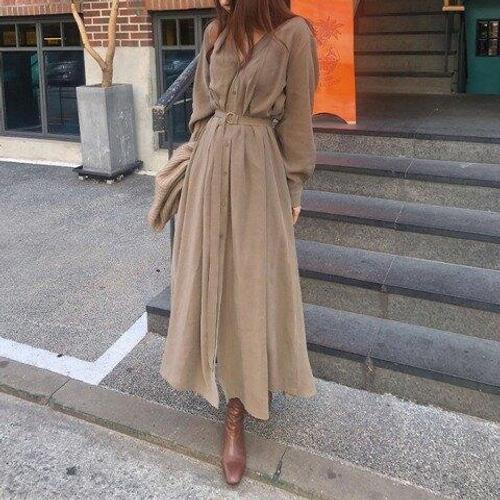 [아리엘스타일]벨티드 셔츠형 얼리어텀 네보란롱원피스
