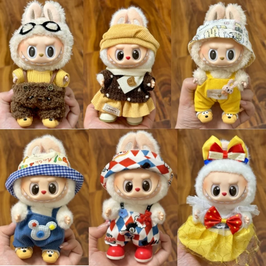 17cm V1V2 Labubu 인형 드레스 새로운 스트랩 바지 세트 인형 인형 교체 드레스