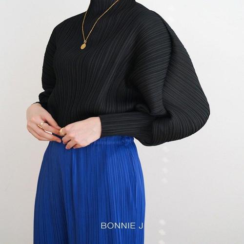 보니제이 / 플리츠 반하이넥 긴소매 주름 링클 블라우스 하이퀄리