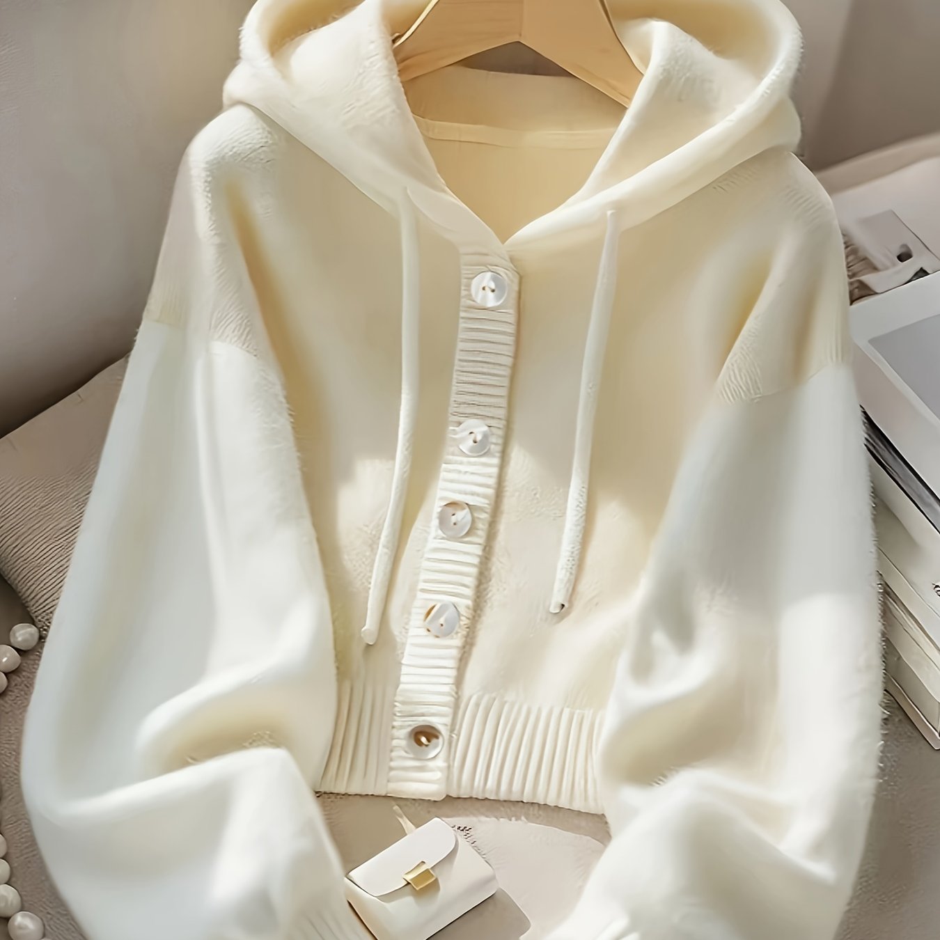 TEMU 여성용 루즈핏 후드 가디건, 부드러운 버튼 프론트 디자인으로 가을, 겨울철에 편안하고 스타일리시한 캐주얼 웨어로 완벽합니다.