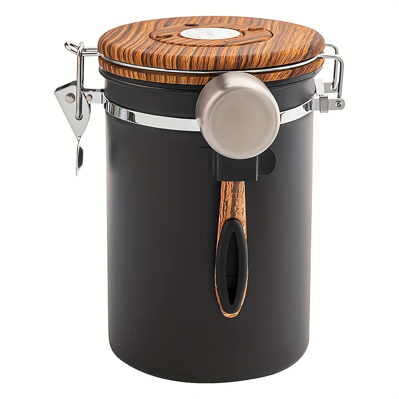 TEMU 1800ml 스테인리스 스틸 에어타이트 커피 캔리스터 - 나무 그레인 리드와 스푼 포함 - 커피콩, 밀가루, 설탕, 기타 용품을 위한 재사용 가능한 원형 저장 탱크 - 가정 또는 사무실 용도로 완벽한 제품 | 에어타이트 컨테이너 | 스테인리스 스틸 컨테이너|커피