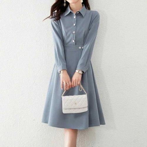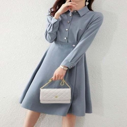 [모노무드]모노무드 별도표기 원피스 인기 A라인 플레어 스커트 감성 카라넥 주얼리