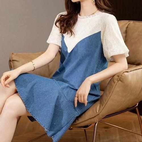 여름 신상 원피스 여성 트랜드 통근 원피스 고급감 라운드 하객 원피스 하프 기장 반팔 원피스 빅사이즈 루즈핏 블링블링 보석 원피스 0424PL04