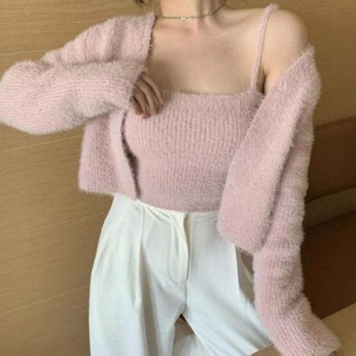 [엄지척]여성 보송보송앙고라 3계절 크롭기장 나시가디건 세트_19557655_667501
