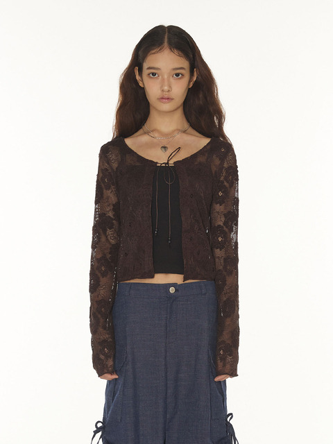 [디어스토커] 보헤미안 레이스 가디건 - 브라운