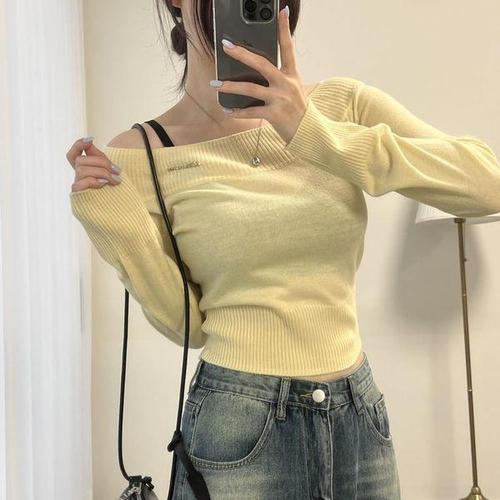 [다잇템]여자 탱크 펜던트 슬림 페미닌 볼드숄더 니트