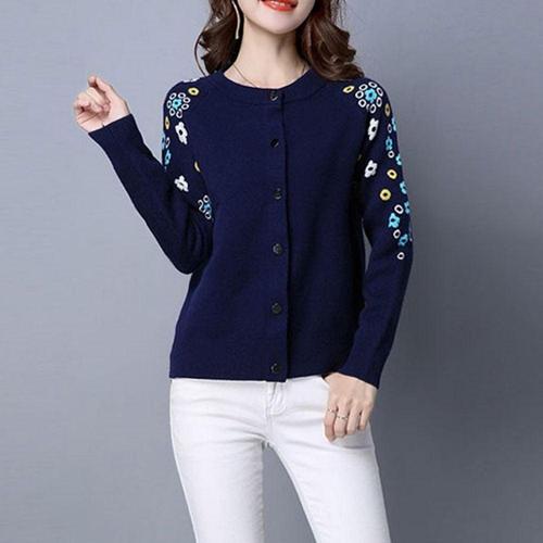 국산 여성 라운드 단추 봄 니트 가디건 BOM-WJK-11806-네이비