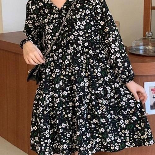 [엄지척]여성 봄원피스 꽃무늬 꽃잎 잔꽃 쉬폰 긴팔 롱 드레스_19913566_667501