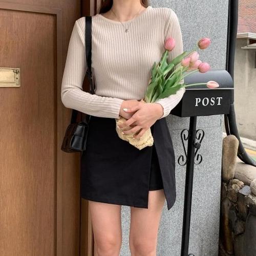 [유야]여성 5컬러 면 무지 라운드 트임 롱 티셔츠 -FTS0532- 봄 가을