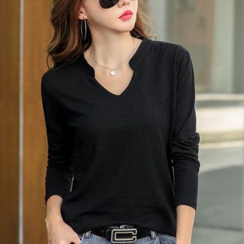 F85596 기본스타일 V넥 면티셔츠 봄신상긴팔티 WFL8DB4
