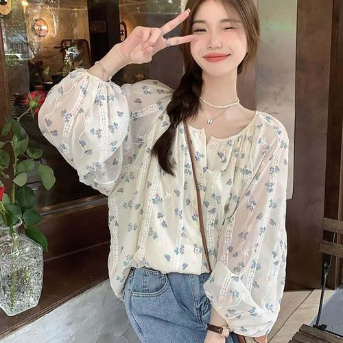 [셀럽하우스]여성 QWSB0616 로맨틱 플라워 시스루 벌룬소매 블라우스 봄신상