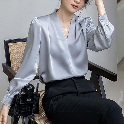 [셀럽하우스]여성 SBZV1405 고급무드 새틴 브이넥 블라우스 출근룩 봄신상
