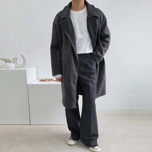 커스텀 미니멀 오버핏 롱코트 (2color) 로브 싱글 맥 정장 봄 가을 겨울 모직 코트