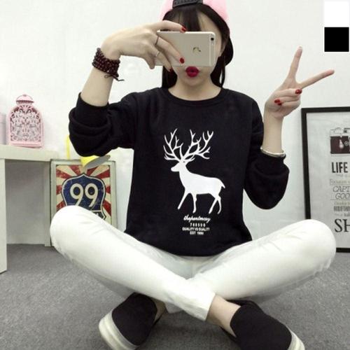 여성 루돌프 기모 맨투맨 1P 봄가을 안감 긴팔 티셔츠 WE1F79B