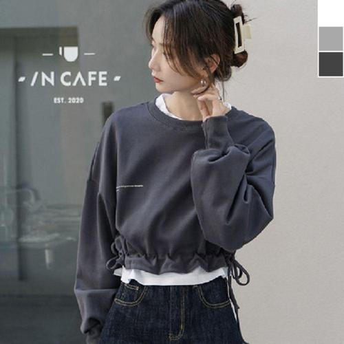 루즈핏 크롭 스트링 맨투맨 1P 봄가을 데일리 티셔츠 WDD66EF