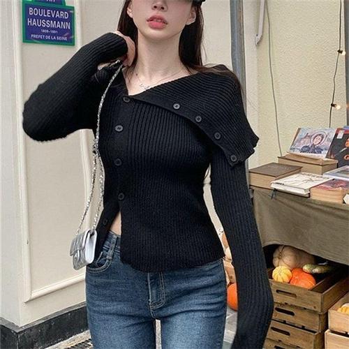 LK-K014 봄 오픈숄더 니트티 언밸런스 여 WFL6IOB