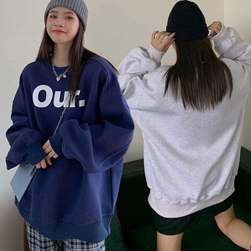 여성 오버핏 기모 맨투맨 1P 봄가을 데일리 티셔츠 WD70520
