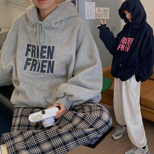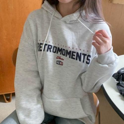 봄 가을 여성 루즈핏 앞뒤 레터링 포인트 후드티셔츠 WCFC950