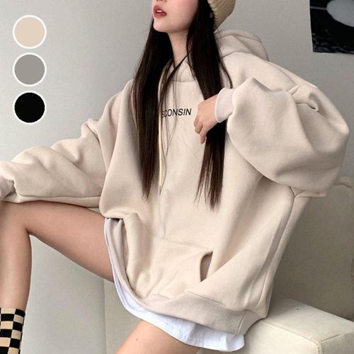 여성 오버핏 드롭숄더 기모 후드티 1P 봄가을 데일리 WD7051E