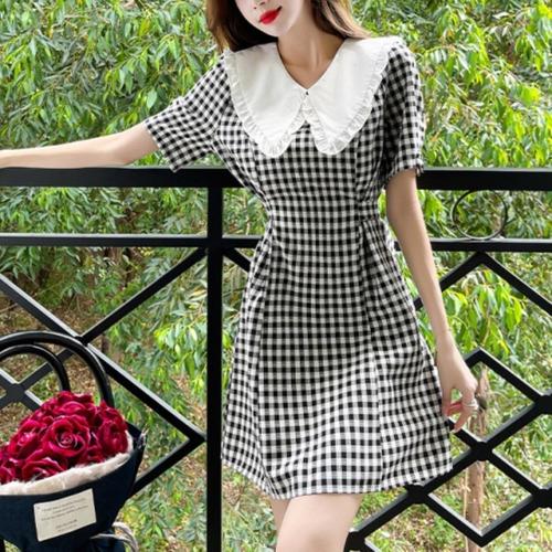 [옷자락]여자 봄 여름 나들이룩 데일리 체크 미니원피스