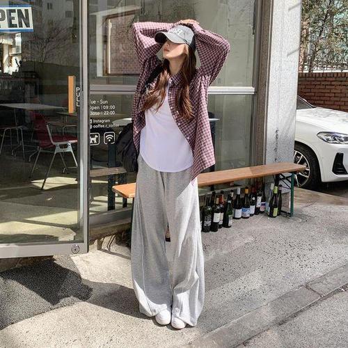 [신상오픈런]여성용 봄가을 오버사이즈 체크 패턴 코튼 셔츠