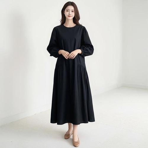 벌룬라인주름롱원피스 캐주얼원피스 니트원피스 엄마옷 임산부봄원피스 가을원피스 하객룩