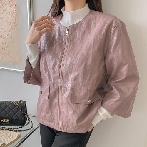 [옷자락]여성 퀼팅 가죽 노카라 팔부 스트링 봄 집업 자켓