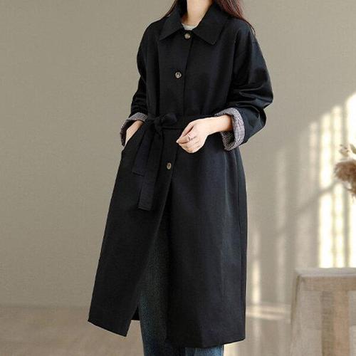 TIMEPURE 여성용 루즈핏 트렌치코트 카키 벨트점퍼 데일리 캐주얼 외투 여성스러운 분위기 모던 코트