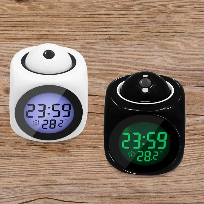 다기능 프로젝션 차임 시계 LED 라이트 프로젝션 알람 시계 음성 차임 시계 프로젝션 시계