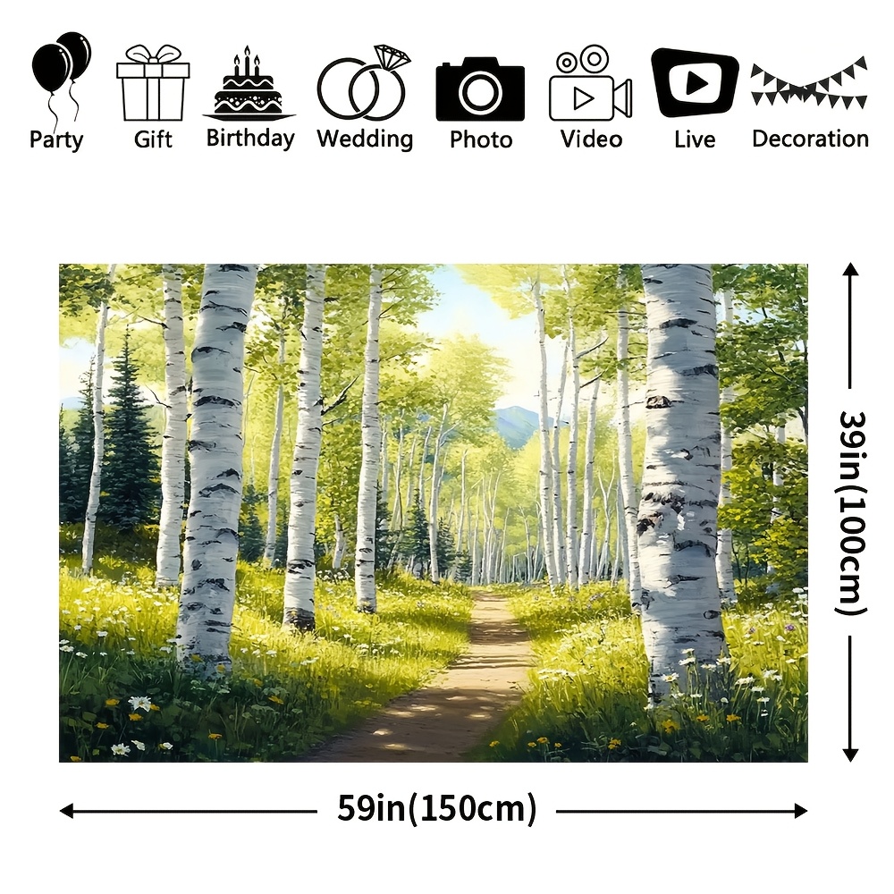 TEMU 1개 매력적인 봄 숲길 폴리에스테르 배경 - 파티 장식, 가족 모임 및 사진 촬영을 위한 무성한 녹지 & 햇빛 장면 - 실내/외부 다용도 사용, 야외 정원 장식
