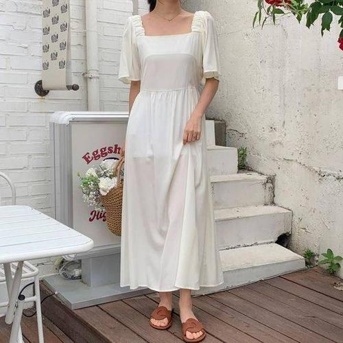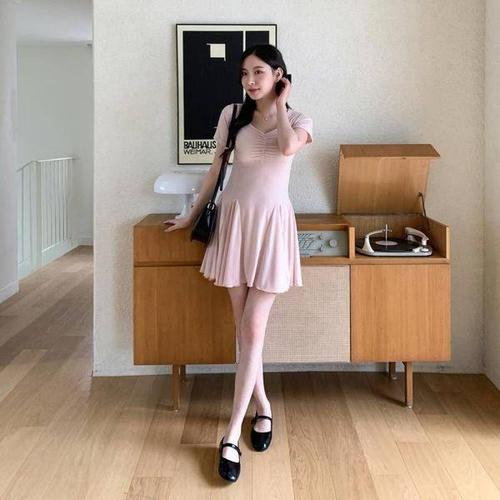 [에이치플러스몰]뷔스티에 여름 하객 베이직 롱니트 트위드 포켓