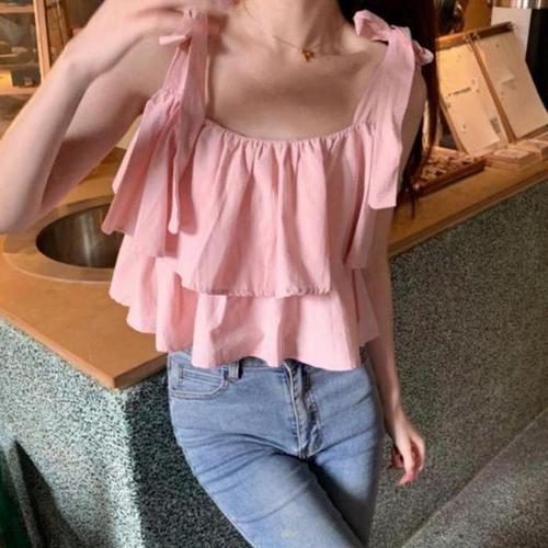 [셀러허브_여성트랜드패션]여름 러블리한 시원한 프릴 바캉스룩 나시 리본 뷔스티에