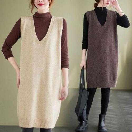롱 니트 조끼 원피스 가을 겨울 캐주얼 민소매 스웨터 롱원피스