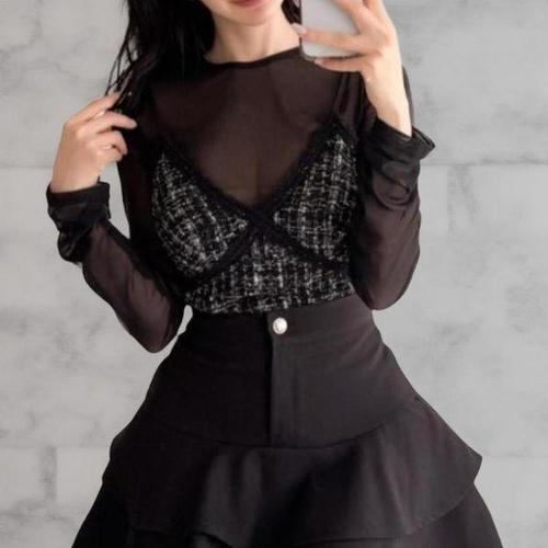 [옷자락] 여성 트위드 슬림 핏 뒷밴드 크롭 뷔스티에