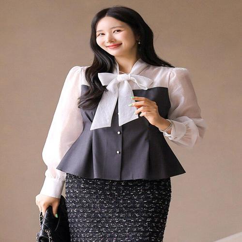 [옷자락]여자 가을하객룩 빅사이즈 콩단추 뷔스티에 블라우스