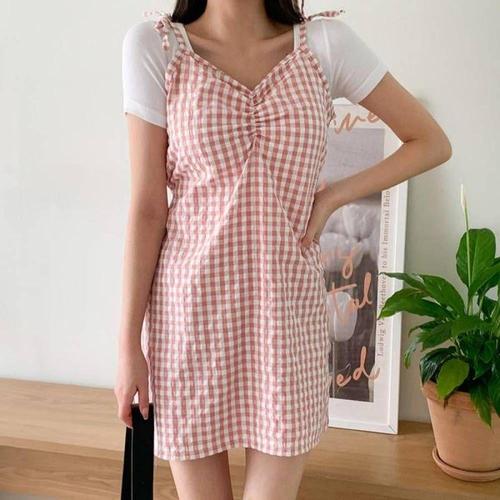 여성 휴양지 체크 쉬폰 셔츠 뷔스티에 더른펠 (WFKOIWF)