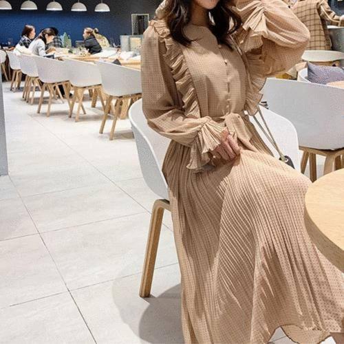 [옷자락] 여성 셔츠 레이어드 뷔스티에 벨티드 롱 원피스