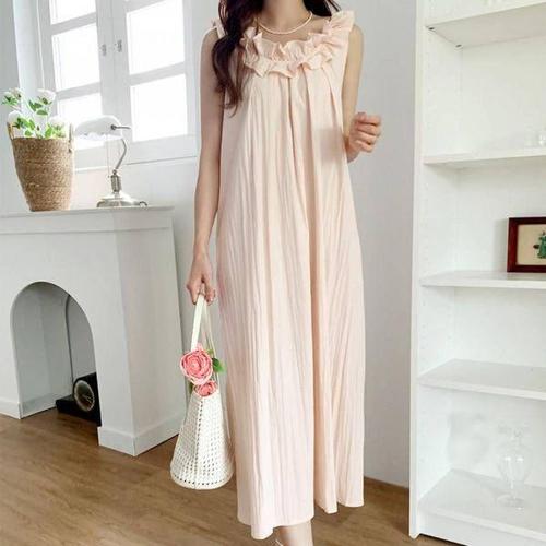 [에이치플러스몰]달라엘 롱니트 여름 원피스 라운드넥 뷔스티에