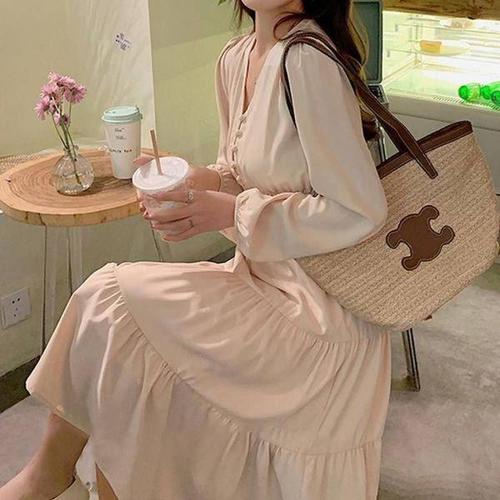 [에이치플러스몰]롱 나담디 휴양지 트위드 여름 뷔스티에 원피스