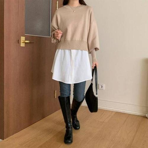 [에이치플러스몰]뷔스티에 여름 라운드넥 골지 롱니트 원피스세트