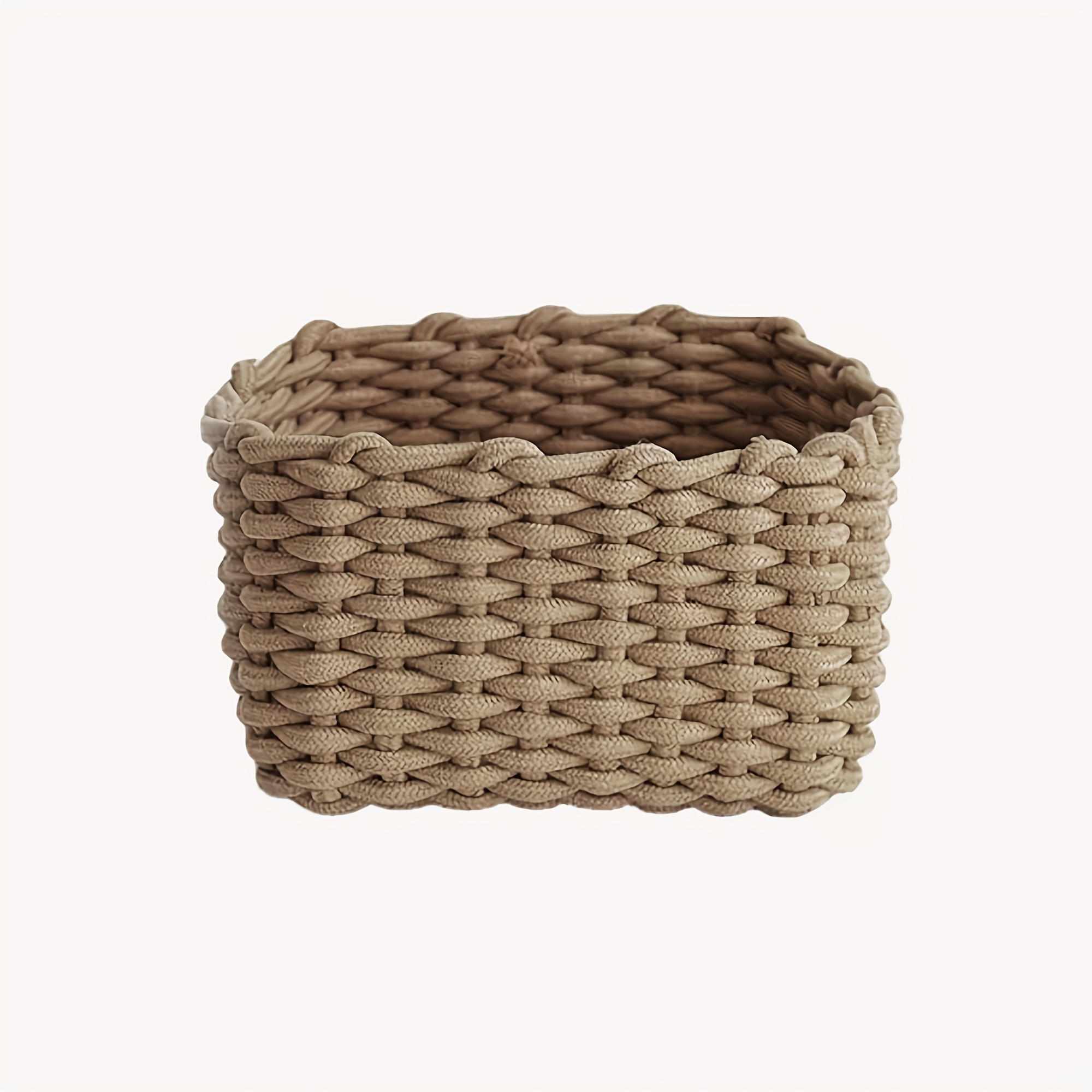 TEMU 로프 스토리지 바스켓, 두꺼운 로프 디자인의 멀티펑셔널 위커 수납함, 메이크업 립스틱 정리용 아이섀도우 데스크트레이 사무실 책상 정리 및 욕실 필수품 정리에 적합