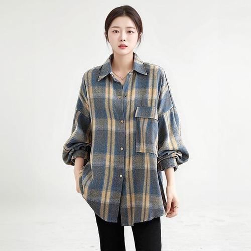 (55~88)2종세트 포켓체크셔츠오버핏 롱셔츠 여성봄블라우스 롱티 박스티 여성긴팔셔츠