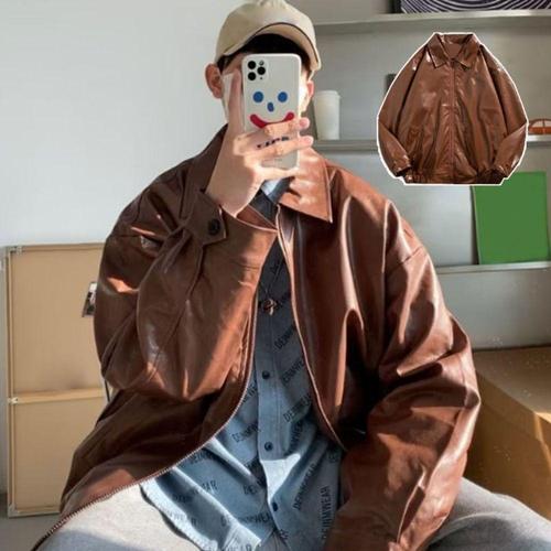 [리빌모아]남자 루즈핏 캐주얼 가죽 지퍼 카라 자켓 LD-JKA-SSIS666-브라운