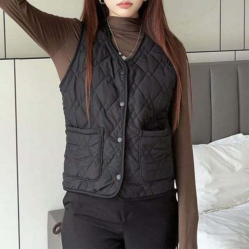 [기타브랜드]경량 브이넥 패딩 조끼 방한 보온 누빔 베스트