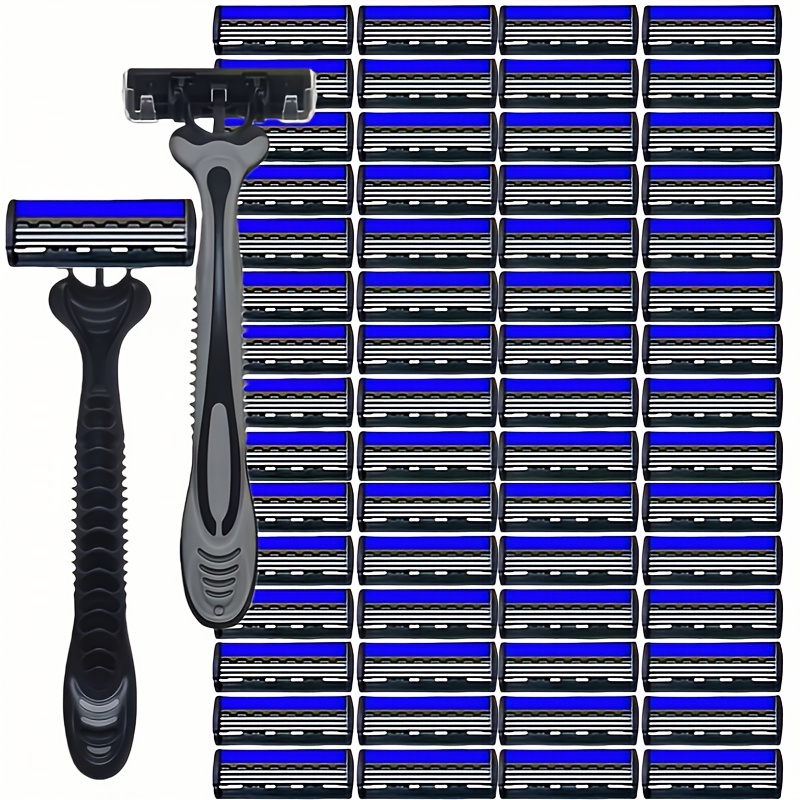 TEMU 3날 안전 면도기 - 인체공학적 핸들 스테인리스 스틸 수동 면도기, 부드러운 면도를 위한 교체용 날 포함, 남녀공용 전통형 안전 면도기