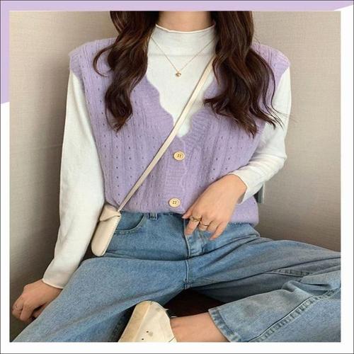 여성 단추 조끼 v넥 니트 베스트 간절기 뜨개 vs-36