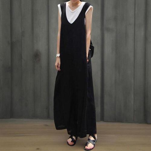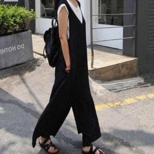 [BZGF7MKO_49]여자 루즈핏 편한 점프수트 브이넥 민소매